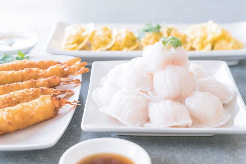 2-piece Prawn Dumpling, 2-piece Shiu Mai, BBQ Pork Bun, Sticky Rice, Spring Roll, Charcoal Custard
